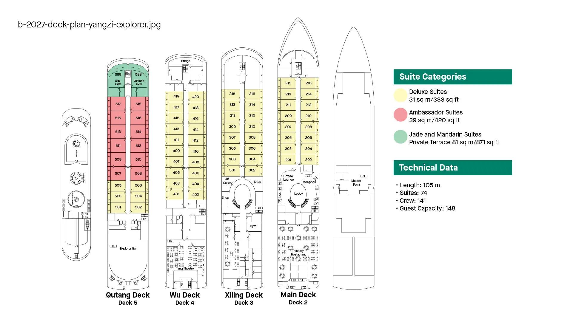 Launched in 2025, the Yangzi Explorer features stylish interiors and a range of cabin categories