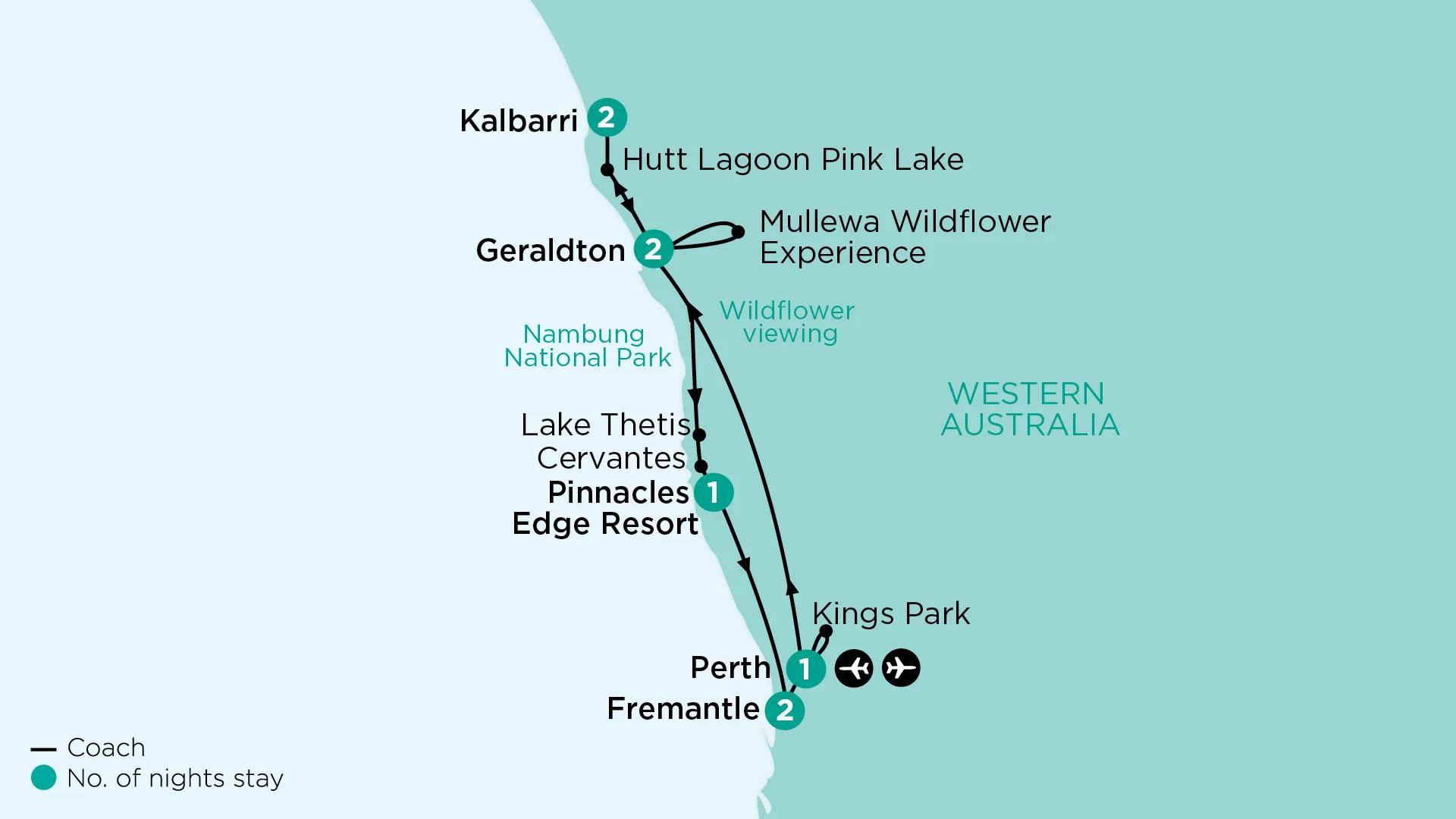 Discover the beauty of Western Australia during spring. Guided by our local experts, we search for the state’s wondrous wildflowers, as we travel from Perth to Geraldton. In nearby Mullewa, witness remarkable wreath flowers lining the road. See the natural spectacle of the Pinnacles. Witness a spectacular display of wildflowers within Kings Park. Absorb the dazzling display of wildflowers within Kalbarri National Park, including beautiful everlastings.