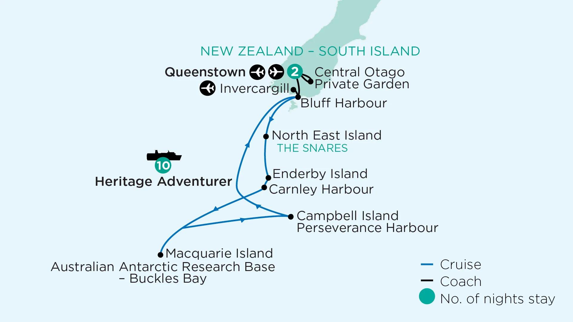 10-night cruise aboard the Heritage Adventurer for up to 28 Botanica guests and two nights’ accommodation in a centrally located four-star hotel in Queenstown