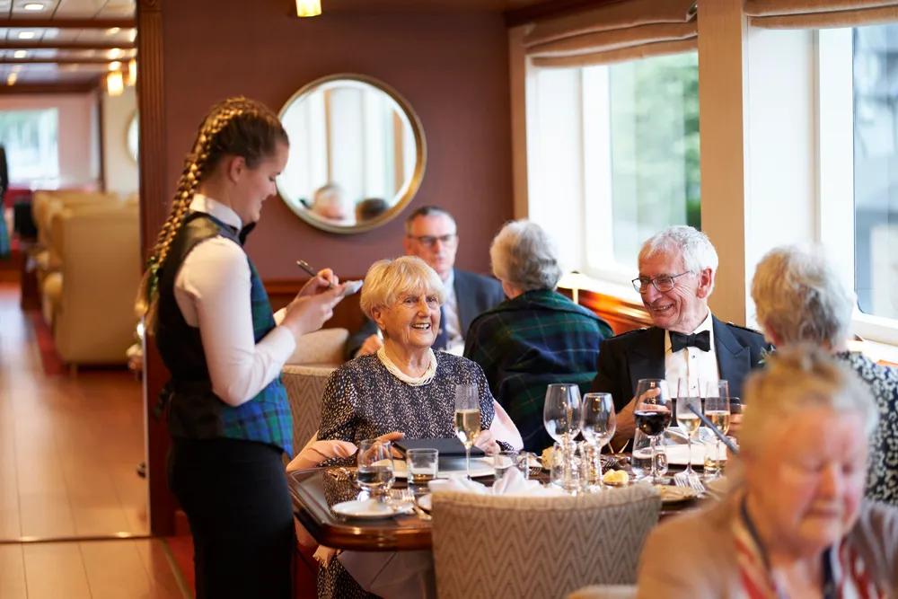 The Caledonian Restaurant is located on the Tweedsmuir Deck, along with the bar and panorama lounge.