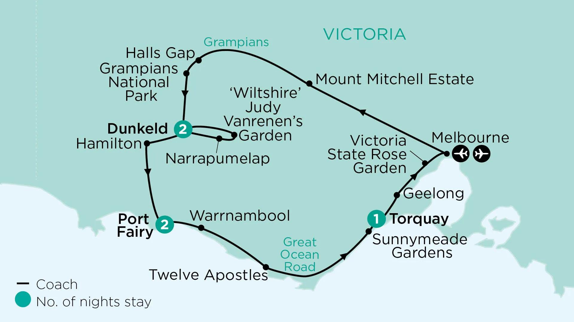 Be captivated by the stunning landscape of the Grampians National Park and drive along the Great Ocean Road to see the Twelve Apostles