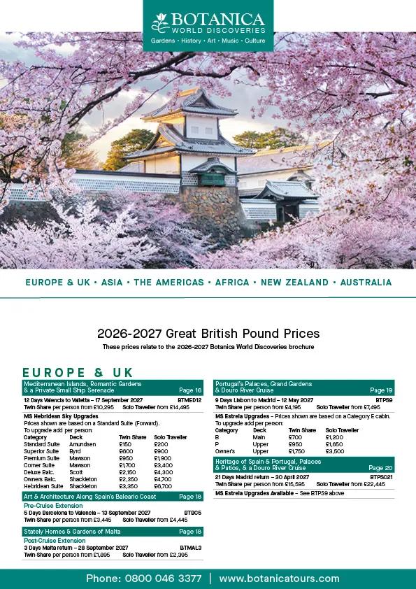 Order your free 84-page Botanica brochure, featuring all our tours and cruises for 2026 & 2027. Join us as we return to some of our favourite destinations, including the flower shows and gardens of Europe, the United Kingdom, Asia, the Americas, Africa, New Zealand, and Australia.